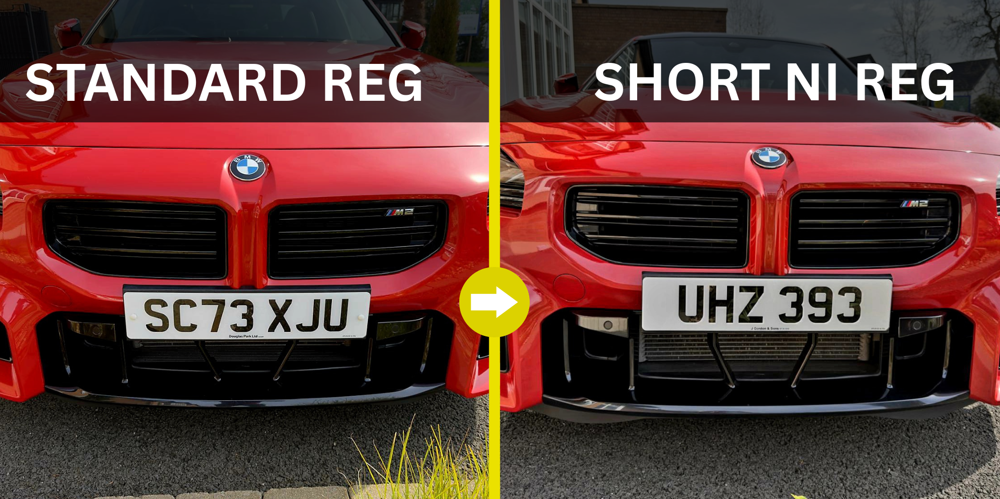 A short dateless NI number plate makes a fantastic difference as shown over a standard UK/NI issue.